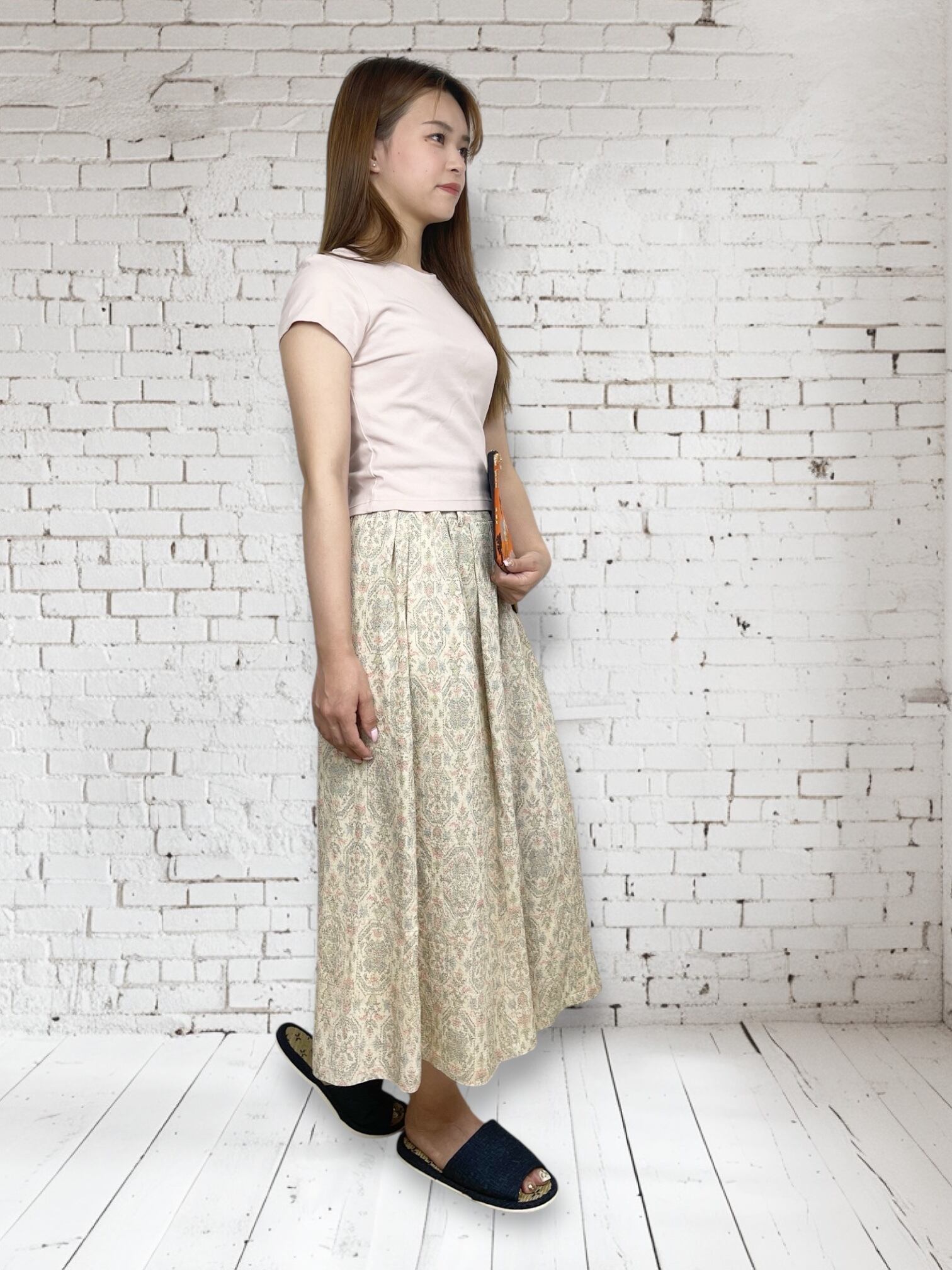 便利なポケットは左右にあり、ウエストはゴムなのでとってもラクチン♪