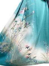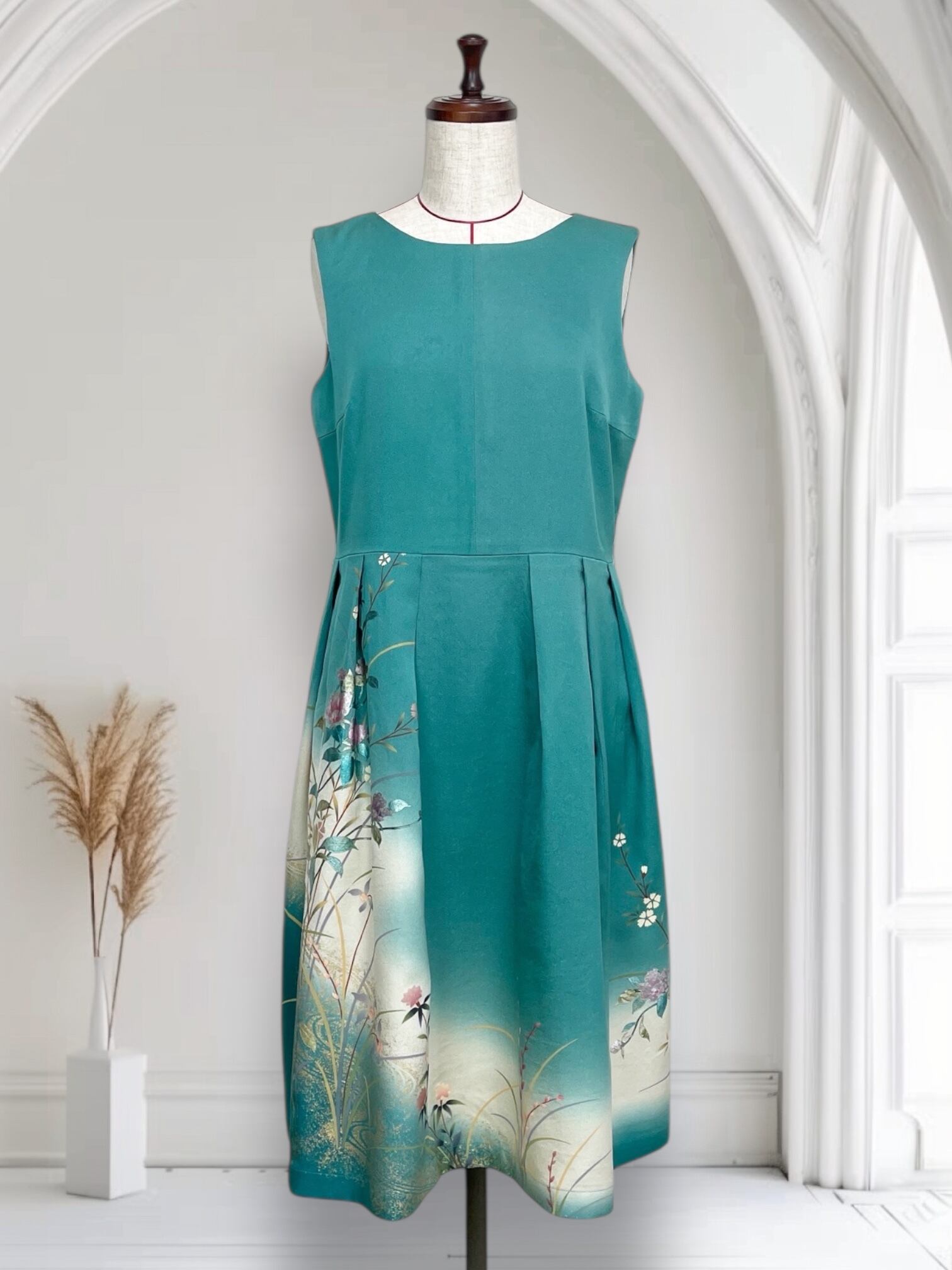 高い位置から大きく絵柄が広がる、豪華なデザインが目を引くワンピース。