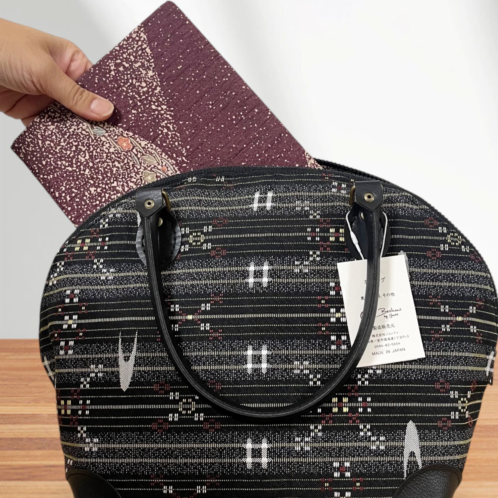 シックでモダンな柄の帯地を使用したコンパクトなバッグです。