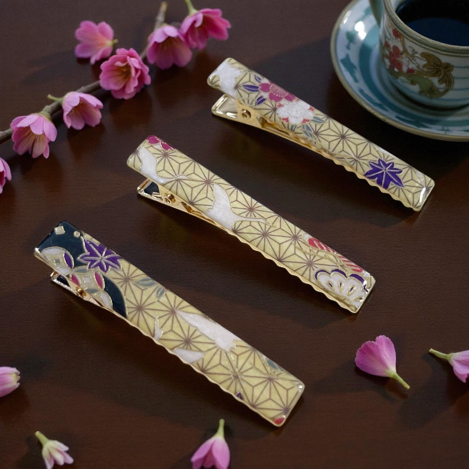 【素材】 表面:千代紙、レジン 金具:スチール