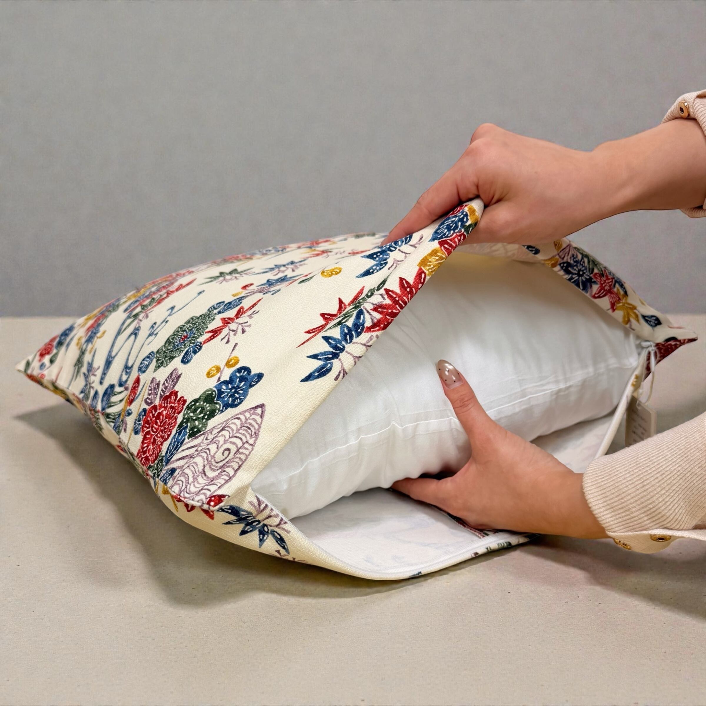 一般的な45cm角クッションサイズなので付け替えも簡単☆