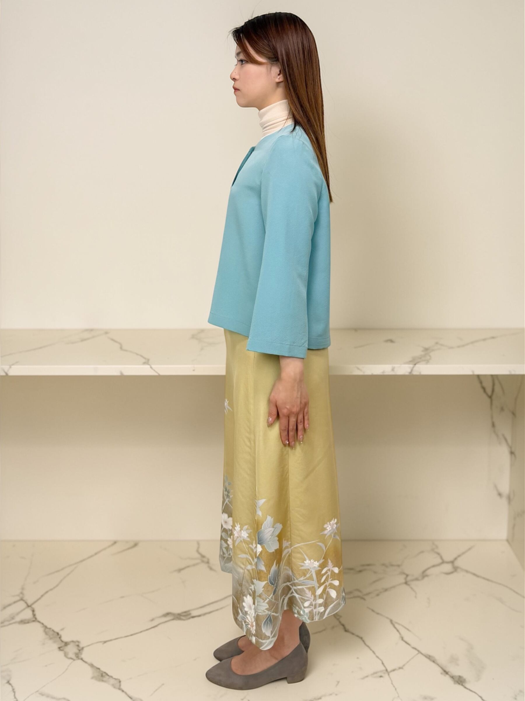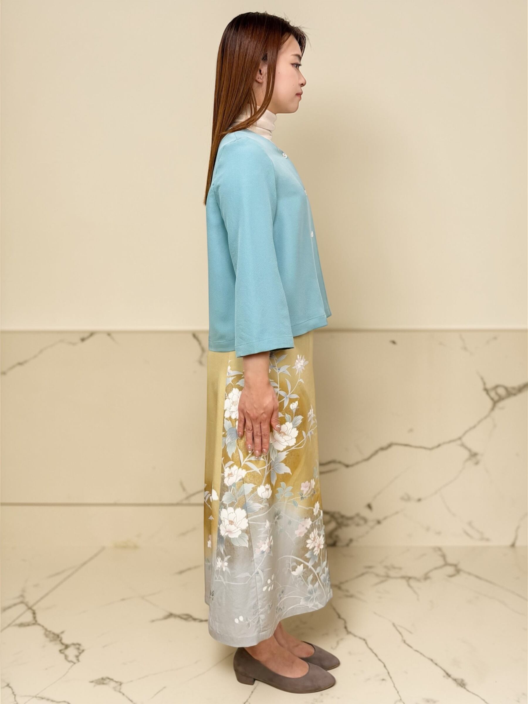【その他】 お洗濯は洗濯機の場合、ドライやお洒落着洗いのコース選択をして下さい。アイロンはあて布をし中温または高温設定にして下さい。クリーニングの場合はシルク素材とお伝え下さい。