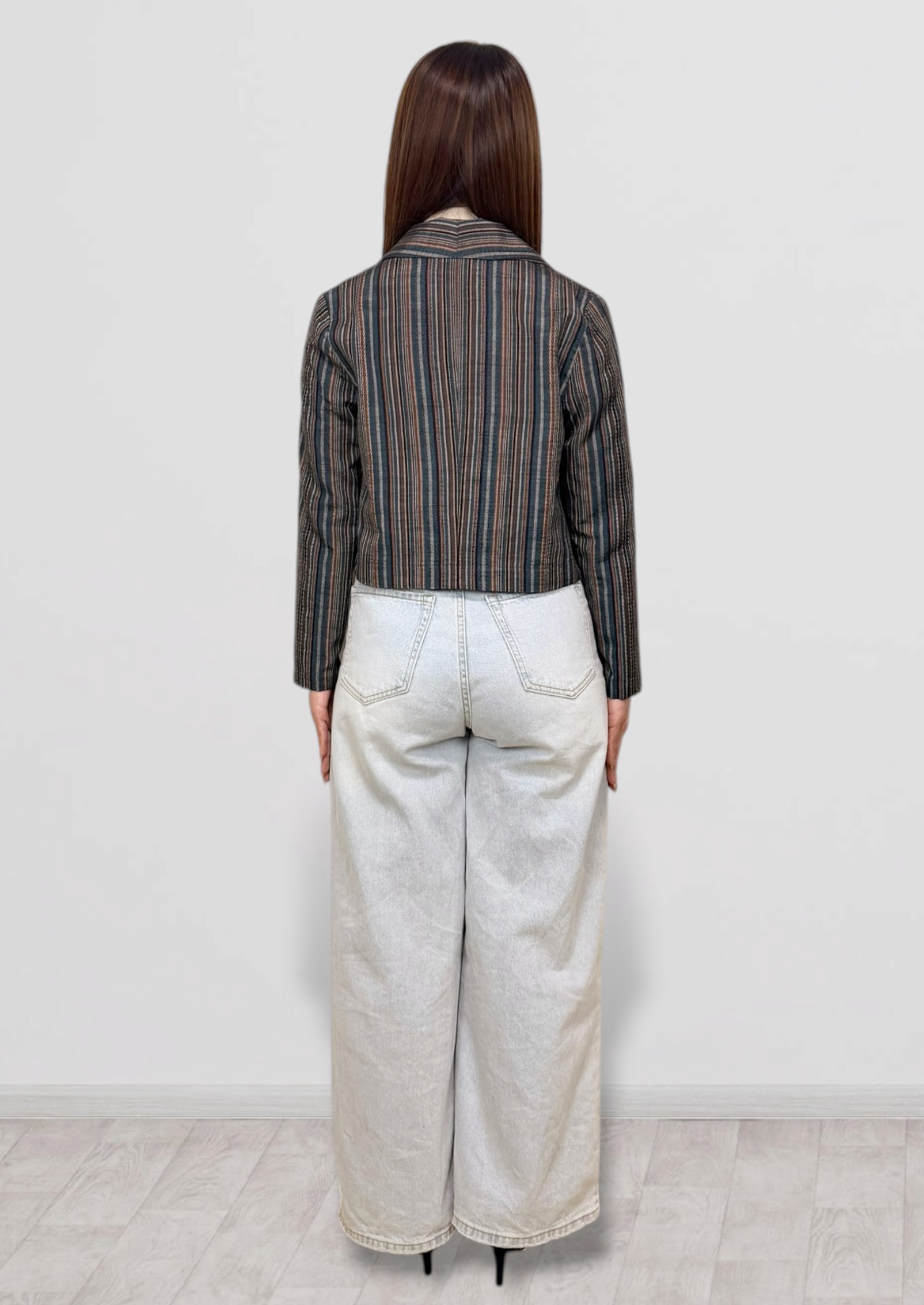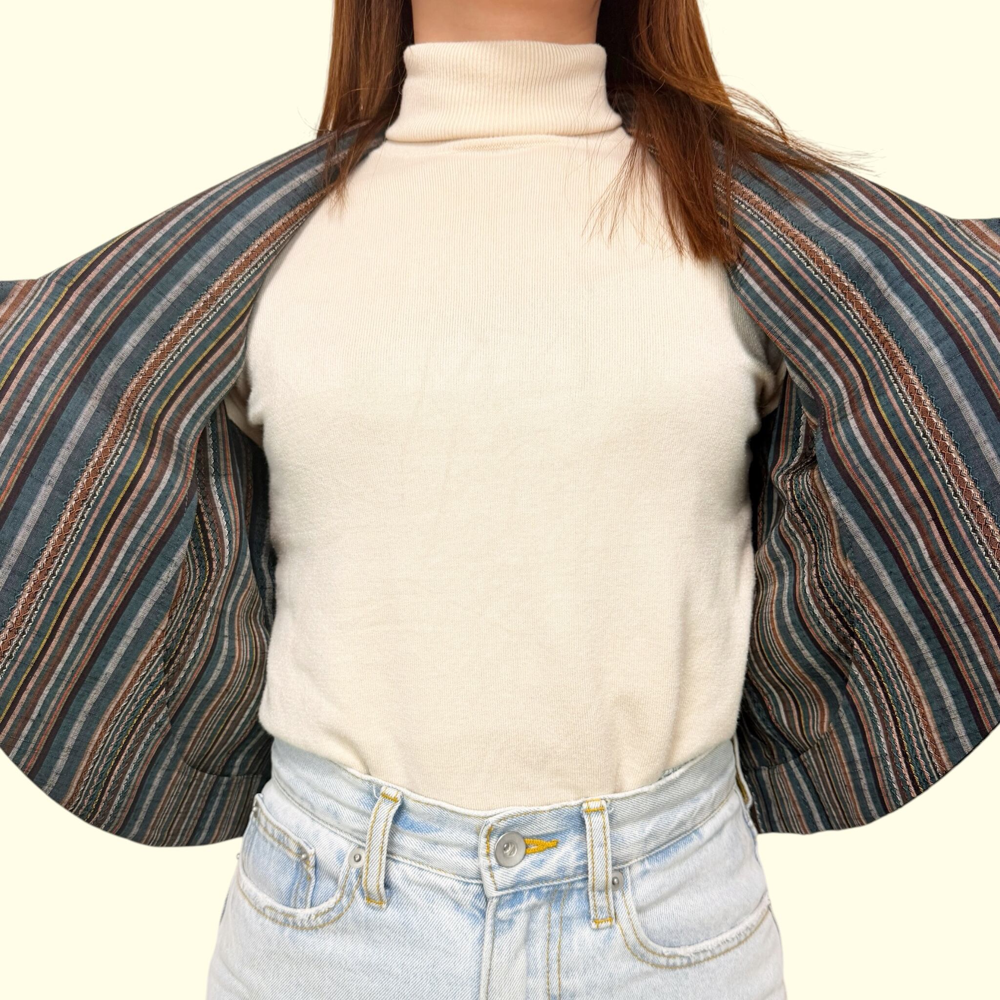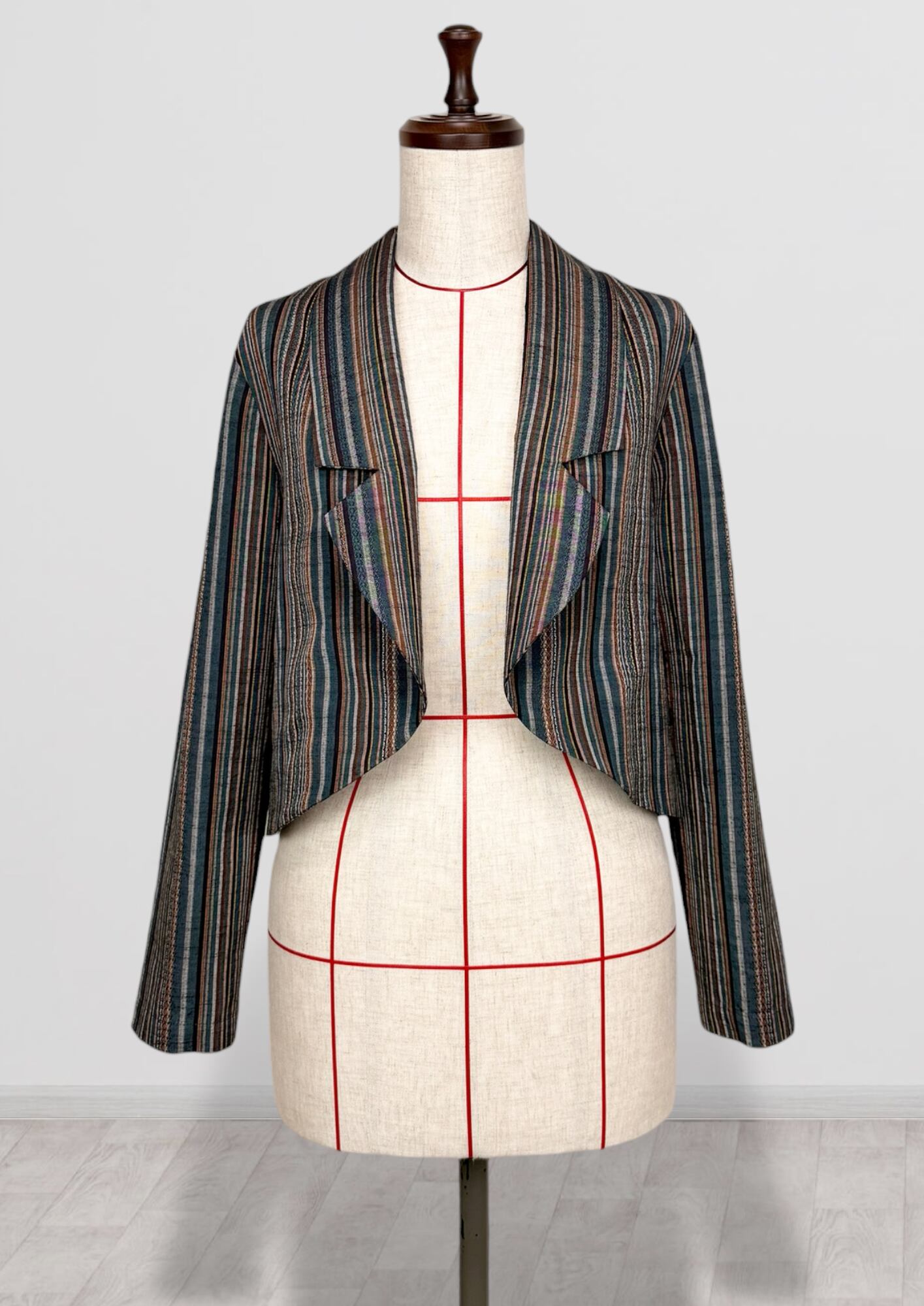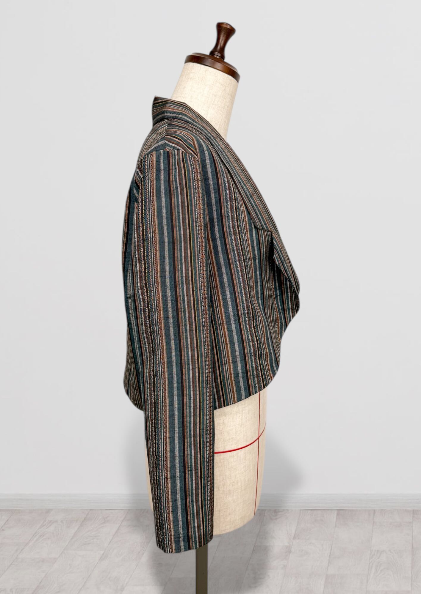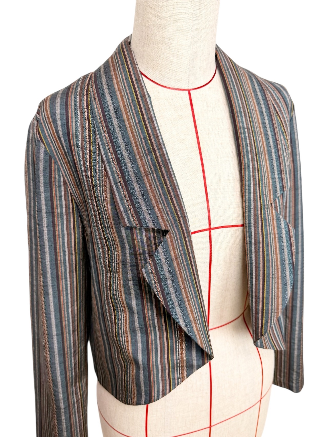 ボレロジャケット Sサイズ【和洋ミックスのクールなデザイン】縞 紬 ストライプ