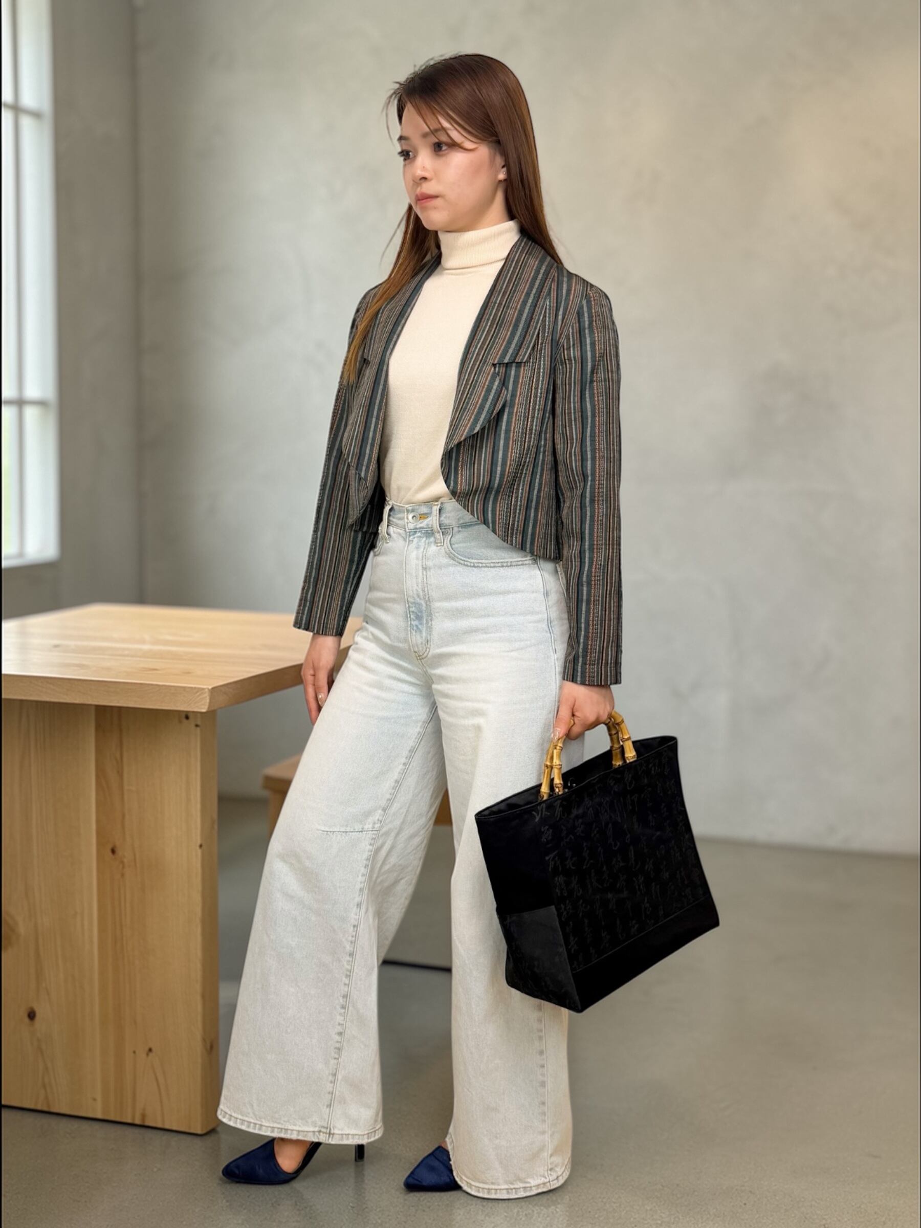 裏地もないので、肌寒い時にバッグに入れて持ち歩けるコンパクトさも優秀です。