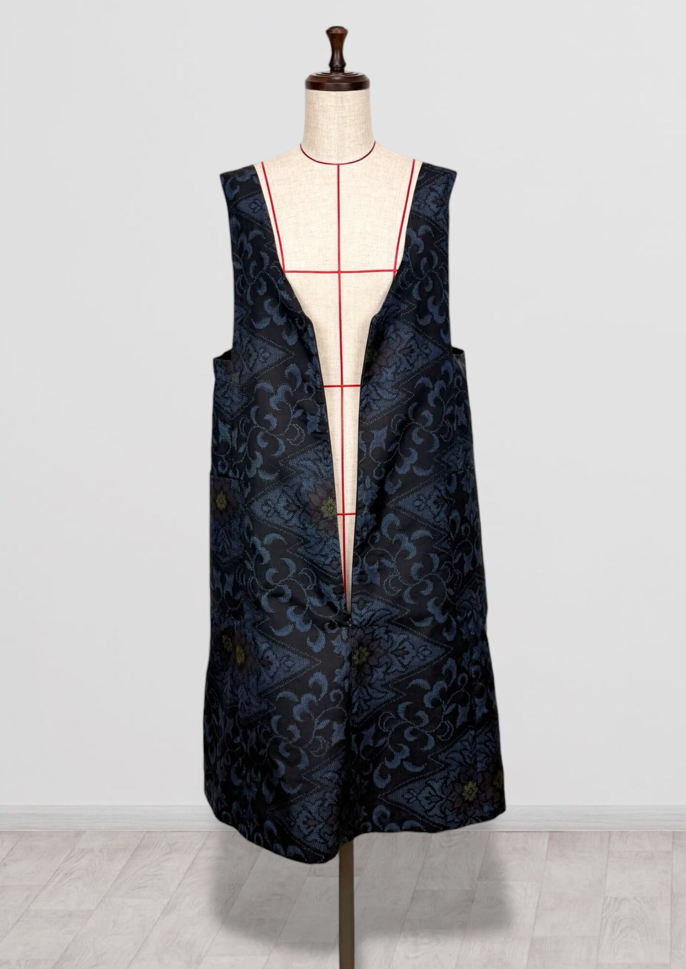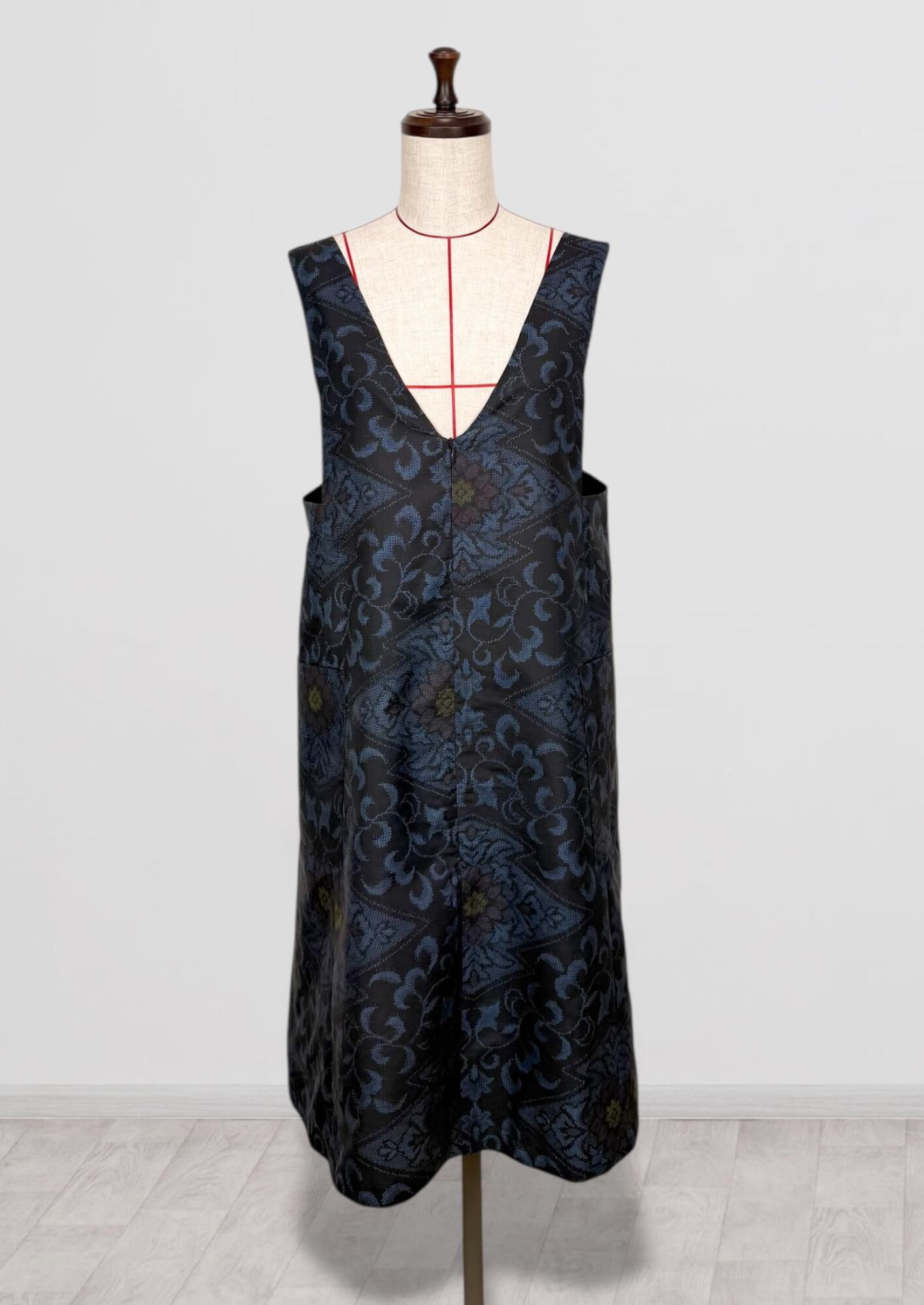 ジャンパースカート フリーサイズ【裏地付き】重ね着で簡単コーデ♪ 前開き 大島紬 花柄