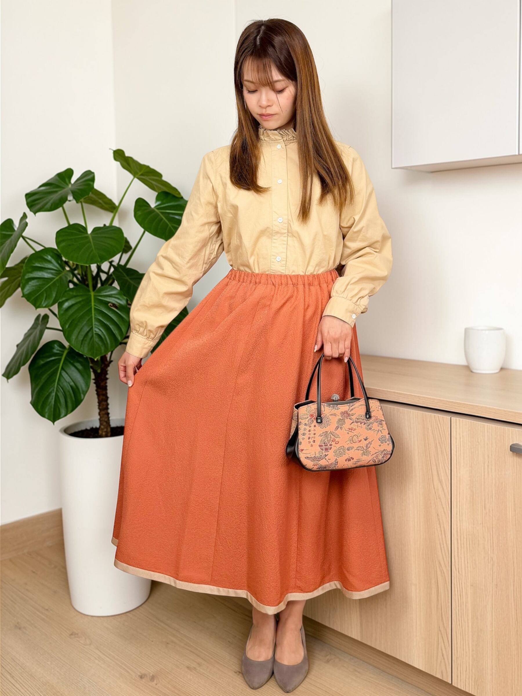 ブラウスと合わせてきっちりコーデも、個性的にブーツと合わせてもしっかりまとまります☆